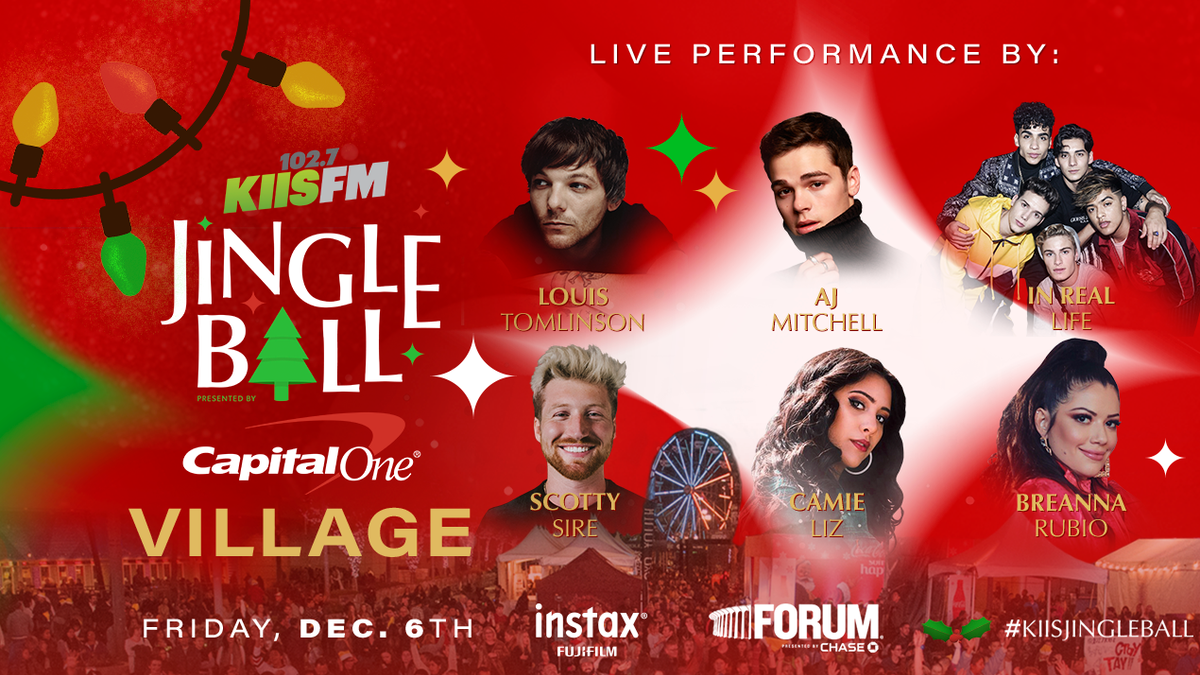 iHeartMedia’s 102.7 KIIS FM, Los Angeles’ #1 Hit Music Station, today announced its Jingle Ball Pre-Show Village featuring performances from Louis Tomlinson, AJ Mitchell, In Real Life, Scotty Sire with LiveMe Music House Season 1 Winner Camie Liz and Breanna Rubio.