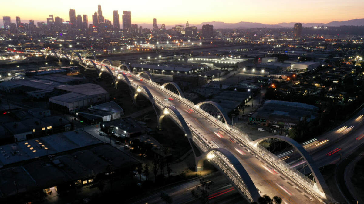 The Sixth Street Bridge in Los Angeles just opened up less than two weeks ago and there's already been so much activity happening from cars doing donuts on the bridge to a car accident to people climbing the arches that line up the bridge.